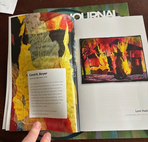 My other big excitement came in the mail in for form of the Catalogue for the Elements Fire show. It is exciting. I was also in the SAQA journal – again about the show. Published in two places at one is a real high.