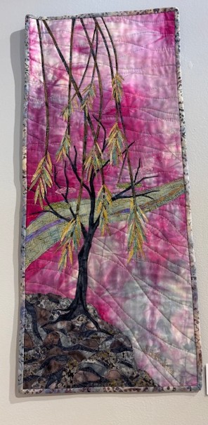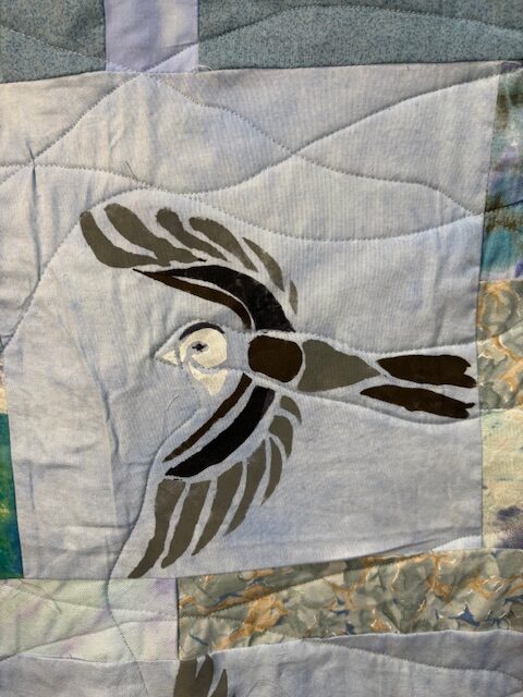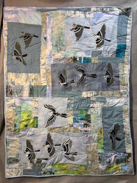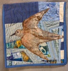 Progress Report: Sparrows This piece is 38″wX 52″ l. I am pleased with the final result here. I tried to use the quilting to show the wind action around the birds.