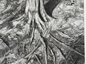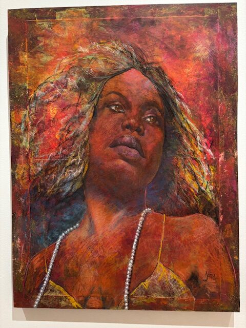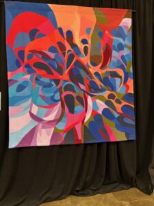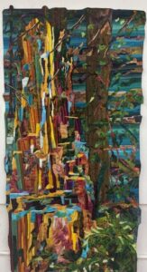 Progress Report: Hollyhocks and Hummingbirds This work is 37.5″ w X 48″ t. I am quite happy with how I feel when I look at this work.