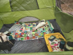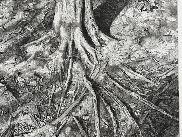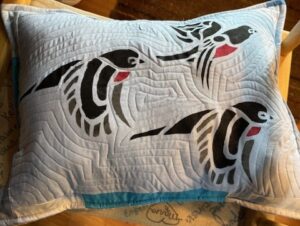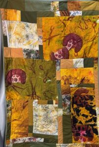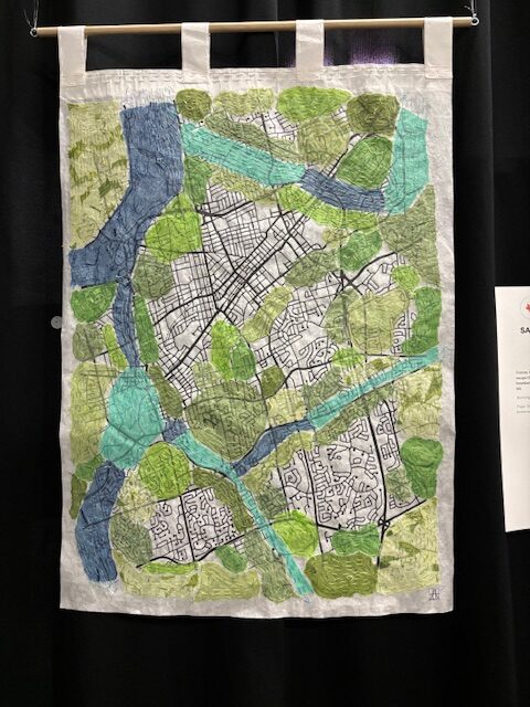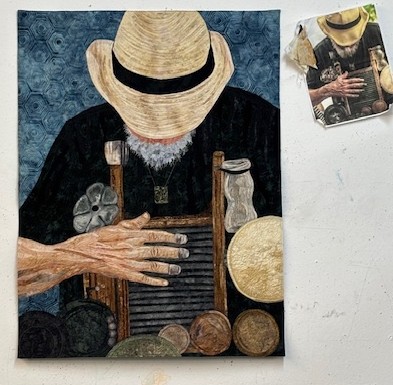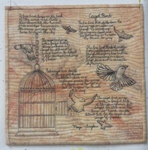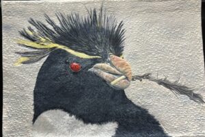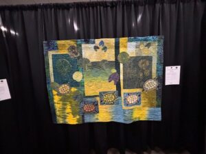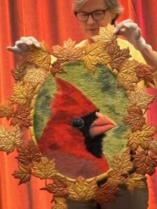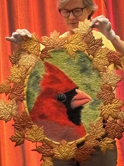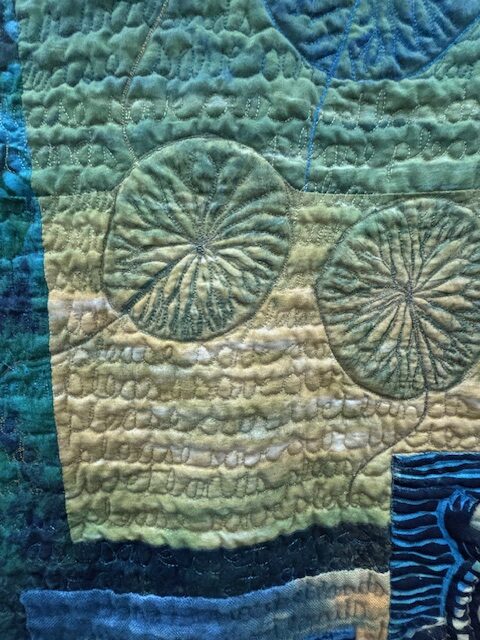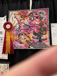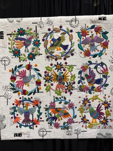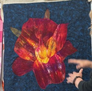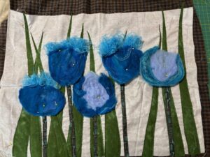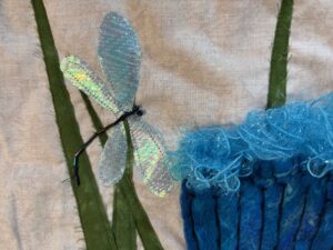 I finished and added the hummingbirds this week and I made a few bees to the work as well. I hope to enter this piece in the SAQA Pollinators challenge.