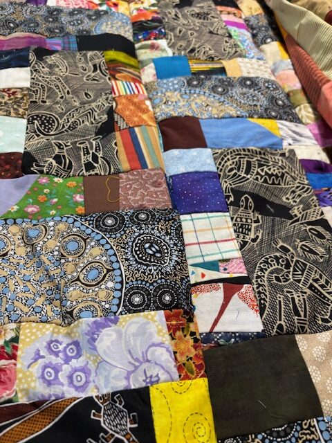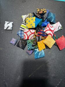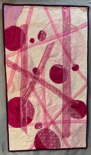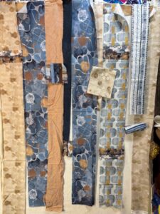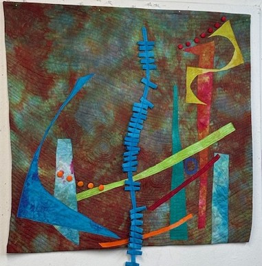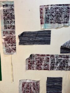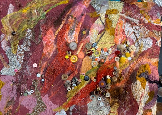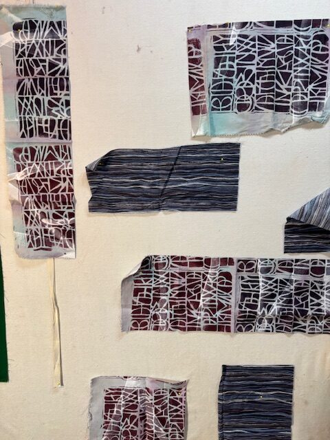 Spinning Out I have started to attach the circles to the surface of this third work I started at the retreat. It needs more build up I think.