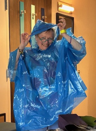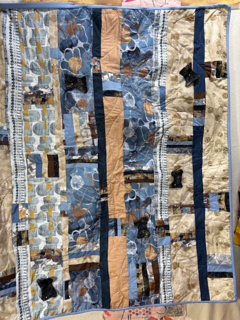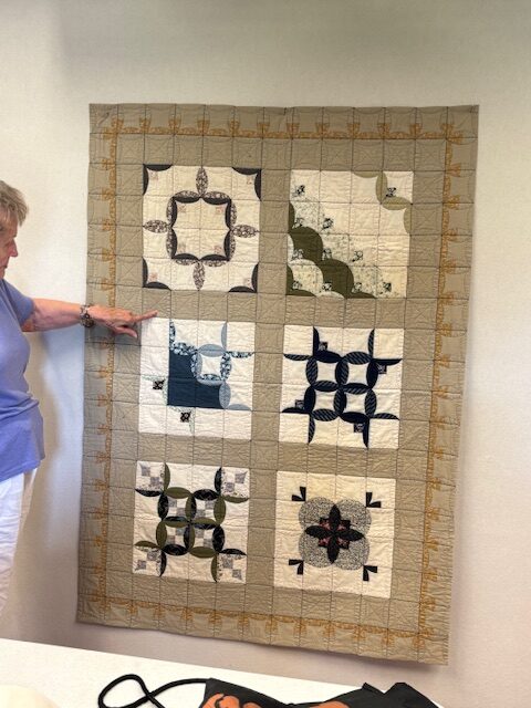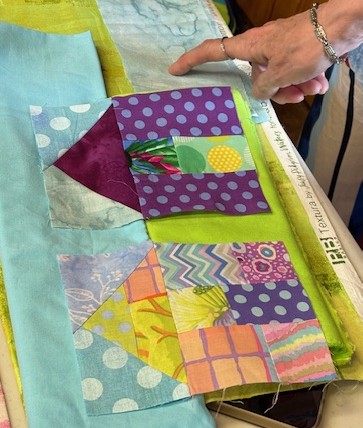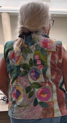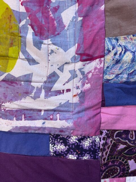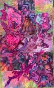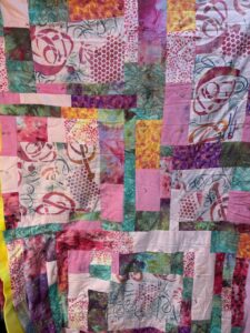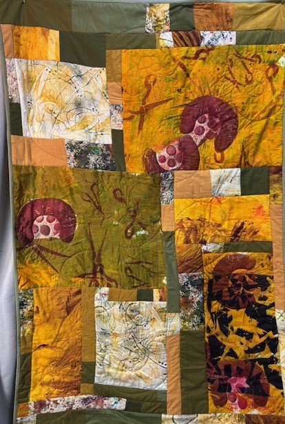 Lap 23-25 I came across this fabric painted cloth that my good friend Barbara V did years ago when she and I were playing in her class room while we were both teaching. I though it would make a great center unit for a lap quilt and so I am working toward that end.