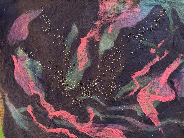 I felted the background a while ago. When I cam across it again this week, I pulled it out and started this new piece.