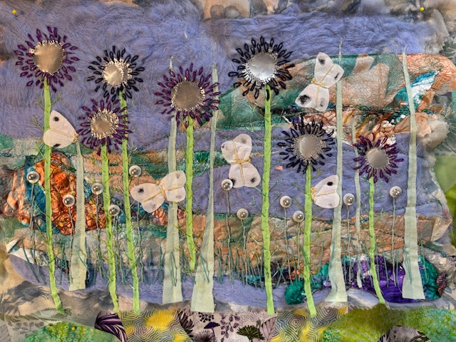 Morning Meadow I am working away on this piece and it too is nearly complete. I think it needs to have a fabric frame and then it will be done.