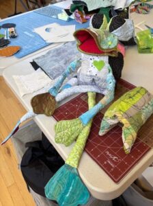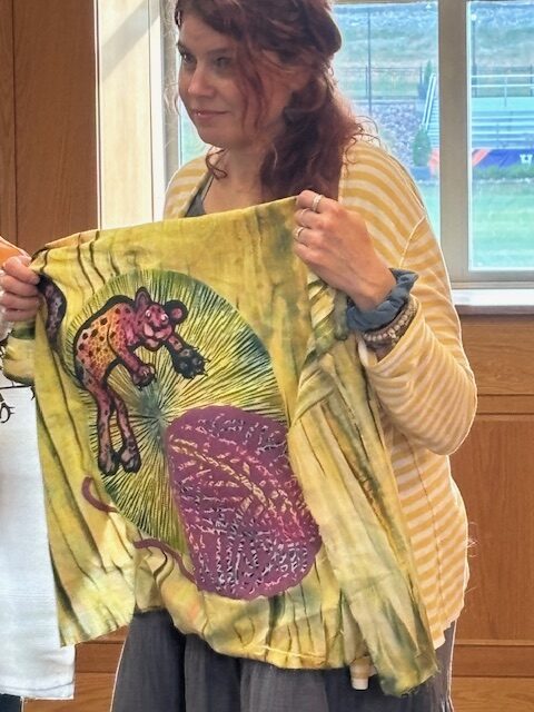 Show and tell at the end of session one was enjoyable.   This is Emely showing off her pieces form Sheila’s class.