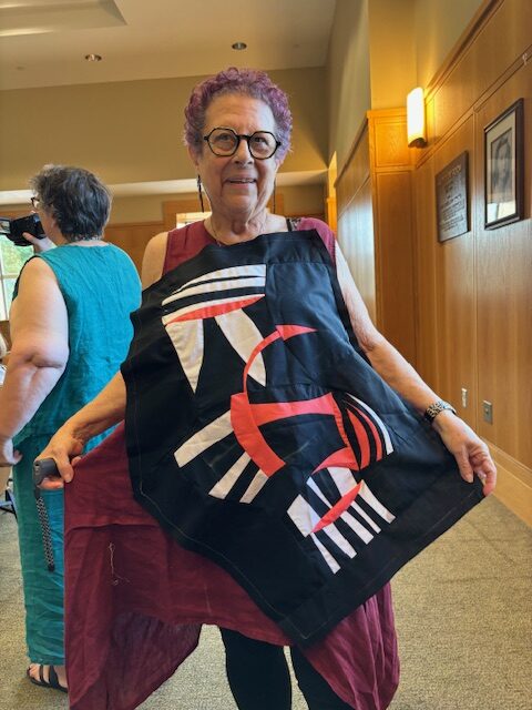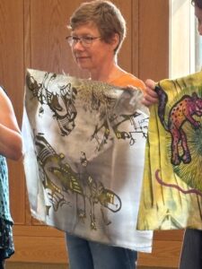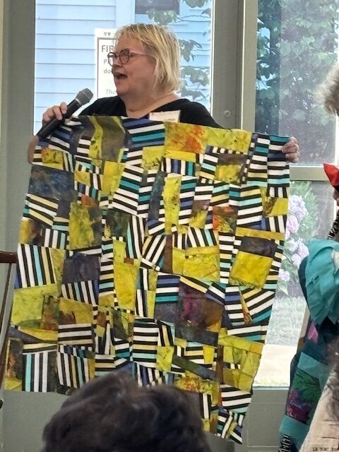 Joan showed off this wonderful piece with it’s irregular edge.   It is great use of the fabric she printed in the fall.
