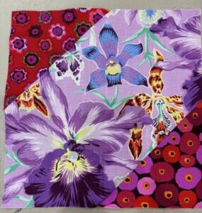 Lap#20  I hare a real running start on this project at this point.   The colors are sure a contrast  from the previous one.   Again I am using fabric from Pat’s Class here.