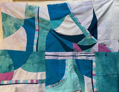 Class 2    This project is also form Sheila class.  I used this  pieces to explore and play with the new techniques she was teaching.   The top is now ready for the next steps.