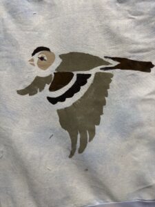 Then I cut new stencils for each of the  four colors of  each bird.      It was difficult to line them all up .